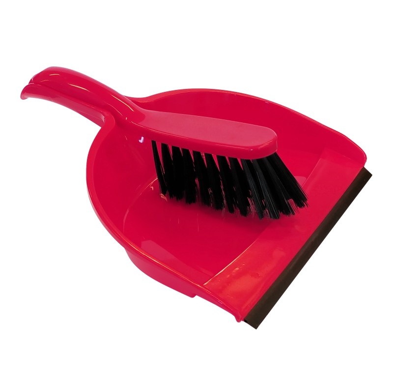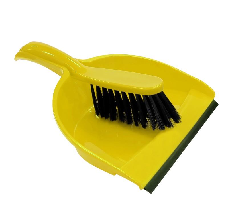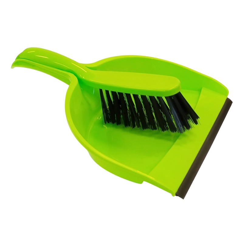 Smetáčky s lopatkou, košťata, kýble, hadry na podlahu.