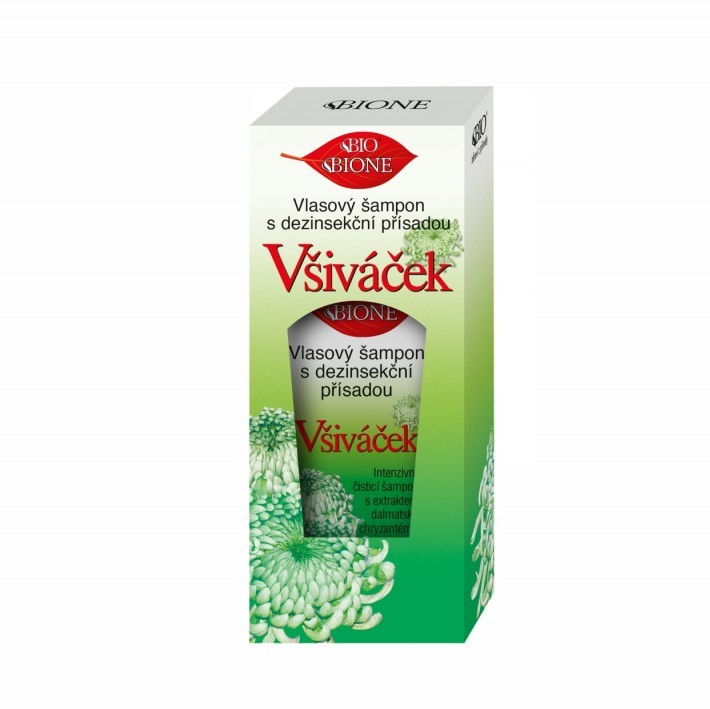 Bione vlasový a tělový šampon se používá k intenzivní očistě těla, s přísadou upraveného extraktu z dalmatské chryzantémy, při napadení všemi, jako podpůrný, intenzivně čisticí vlasový šampon.