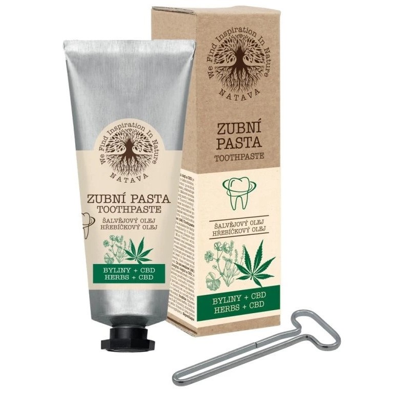 Přírodní zubní pasta s bylinkami a obsahem CBD + zdarma vymačkávač tub.