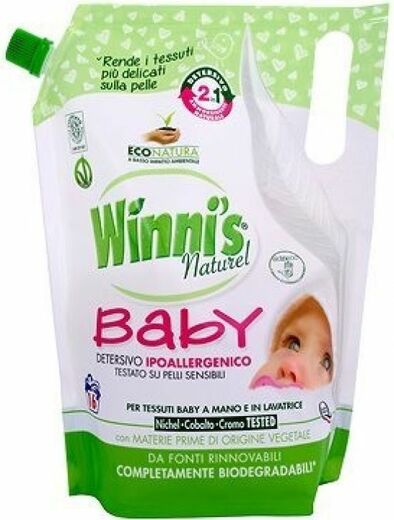 Winni's Lavatrice Baby prací gel a aviváž 2v1 je kombinovaný prací prostředek a aviváž, který byl speciálně navržen pro citlivou pokožku dětí a pro praní dětského prádla.
